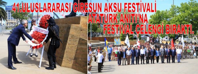 41.Uluslararası Giresun Aksu Festivali kutlama komitesi tarafından hazırlanan çelenk Atatürk Anıtı’na konuldu.