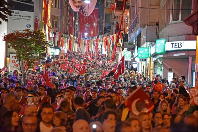 Büyük Cumhuriyet Yürüyüşü” ile Giresun Atatürk Meydanı’nı dolduran Cumhuriyet sevdalısı kalabalık, İzmir Marşı eşliğinde hazırlanan havai fişek gösterisi ile coştu.