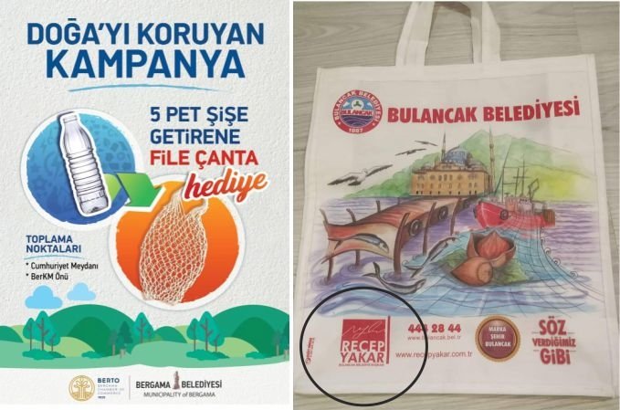 Belediyenin böyle çevreye duyarlı bir çalışmaya imza atması güzel. Ama görünen o ki amaç çevre falan değil. Bizzat Belediye Başkanı’nın seçim çalışmasını ve reklamını da bu çanta ile vatandaşa mı yaptırılmak isteniyor.