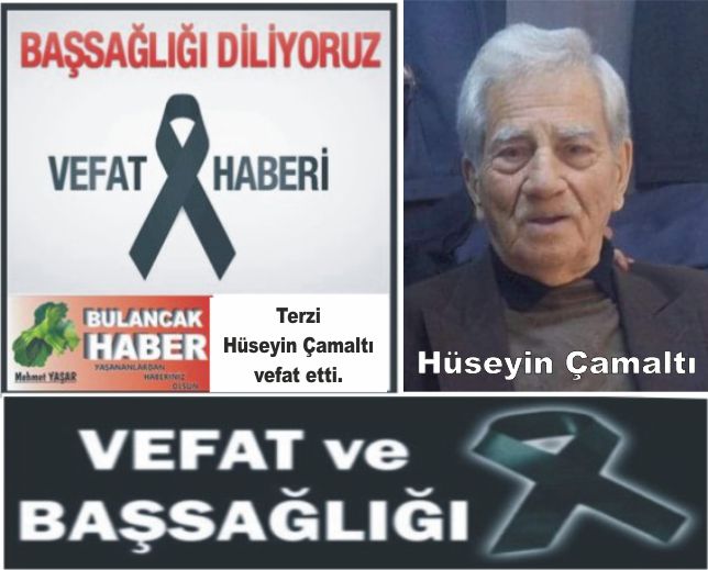 Terzi Hüseyin Çamaltı’nın cenazesi 09 Şubat 2019 Cumartesi günü öğle namazına müteakip Bulancak Orta Camii'nde kılınacak cenaze namazının ardından Talipli Köyü Osman Şıh kabristanlığında toprağa verilecek.