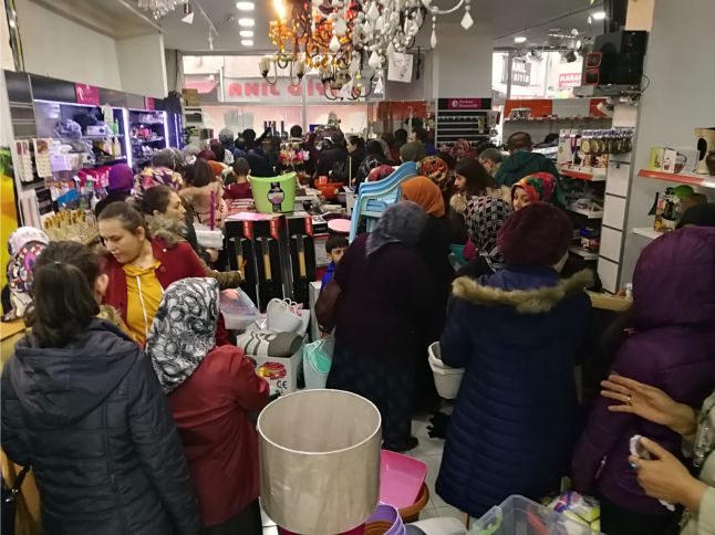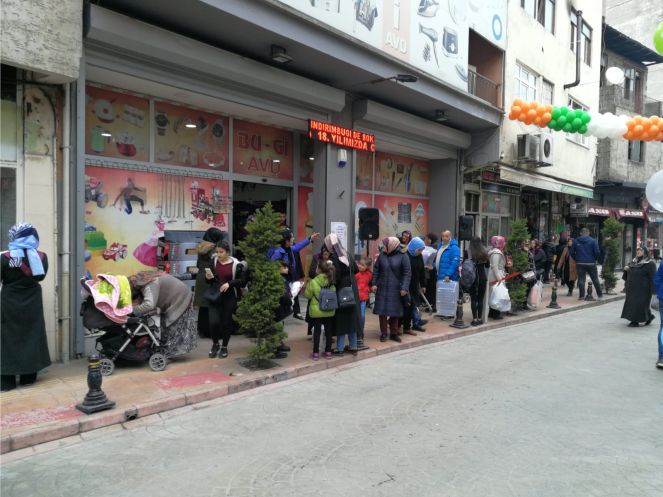 18. yılına özel ne alırsan yarı fiyatına yapan işletme Bulancak’ta adeta izdihama neden oldu. Mağazanın dışı ve içi insan akınına uğradı.