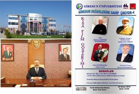 Giresun Üniversitesi tarafından "ÜNİVERSİTEMİZ GİRESUN DEĞERLERİNE SAHİP ÇIKIYOR" programının dördüncüsü, 25 Nisan 2019 Perşembe günü, saat 14.00'da Tarihi Rektörlük Binasında gerçekleştirecekler.