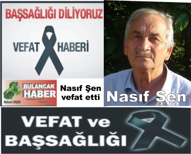 Nasıf Şen’in cenazesi 02 Haziran Pazar günü İsmetpaşa Mahallesinde ki evinden alınarak Gıcıklı Camii’nde öğle namazına müteakip kılınacak cenaze namazından sonra Kuşluhan Köyü Aile Mezarlığında toprağa verilecek.