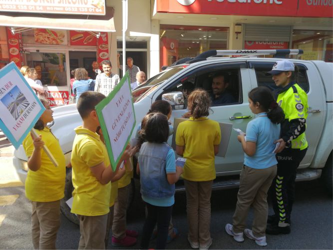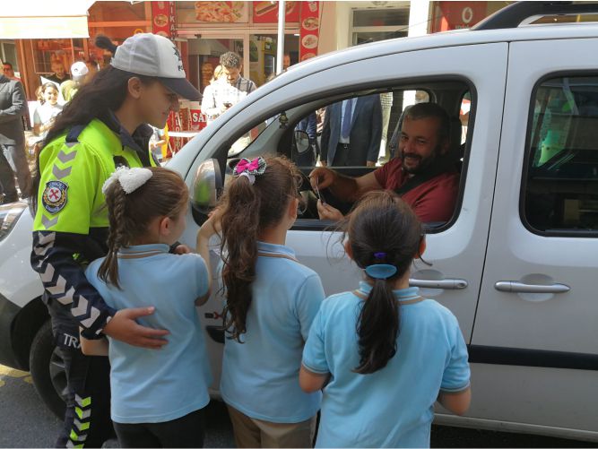 Bulancak’ta “ÖNCE YAYA” uygulaması kapsamında, Şemsettin Caddesi, 15 Temmuz Caddesi ve Millet Caddesi’nde bulunan yaya geçitlerinde uygulama yapıldı. Yapılan çalışmada Trafik Polis memurları Fatma Yılmaz ve Aleyna Ayvaz Yüce öğrencilere ve vatandaşlara broşür dağıttılar.