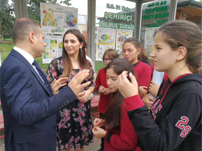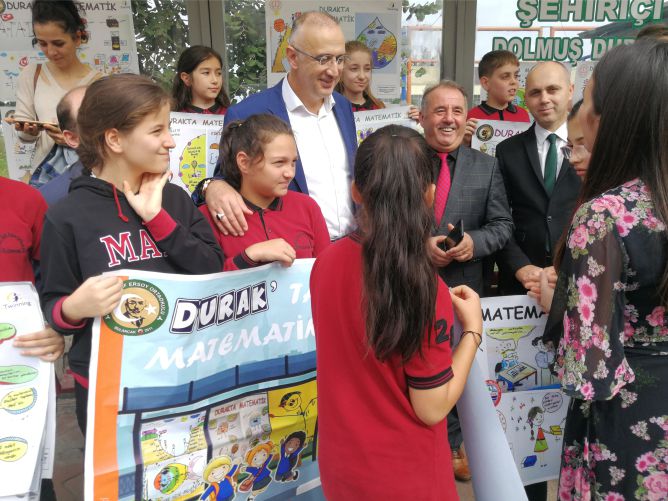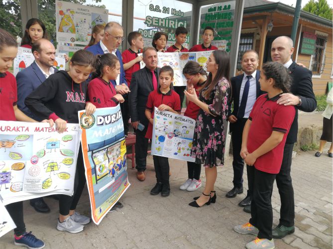 Uluslararası en yenilikçi 40 çalışma arasında yer alan “DURAKTA MATEMATİK” Projesi çerçevesinde öğrenciler okulda derslerdeki konularına paralel olarak kendi çizimleriyle matematik konularına görsellere aktararak eğlenceli bir şekilde matematiği öğreniyorlar.