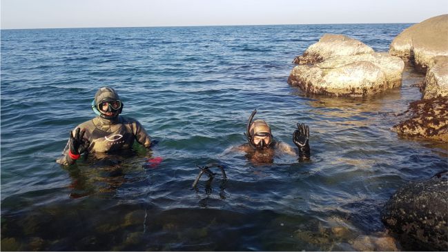 Öte yandan iki arkadaş hafta sonu hem spor hem de ailelerine taze balık yedirmek için zıpkınla balık avına çıktığını açıkladılar.