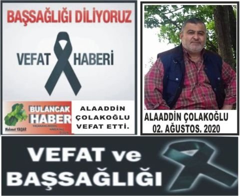 Hakkı Çolak'ın yeğeni, Bulancak Belediye personellerinden Yusuf Anapa’nın dayısı, Sahure, Sebahat ve ilçemiz esnaflarından Selahattin Çolakoğlu'nun kardeşleri Alaaddin Çolakoğlu vefat etti.