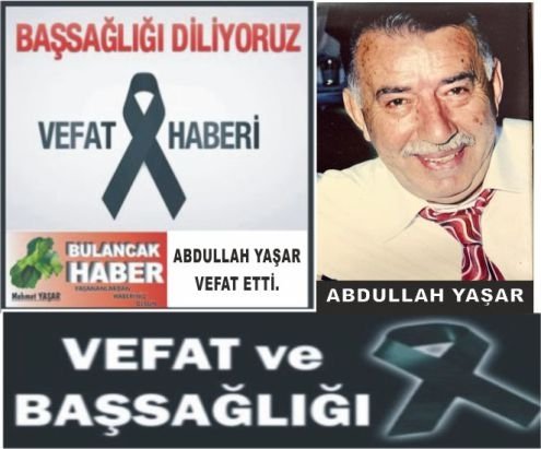 İlçemizin ilk esnaflarından Merhum Elmas Yaşar ve merhume Zekiye Yaşar'ın oğlu Abdullah Yaşar 79 yaşında vefat etti.