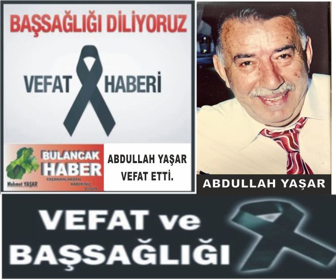 Abdullah Yaşar'ın cenazesi 25 Ekim Pazar günü saat: 14.00’da Orta Camii'nde kılınacak cenaze namazından sonra Bulancak eski Aile Kabristanlığında toprağa verilecek.