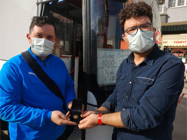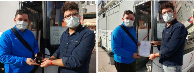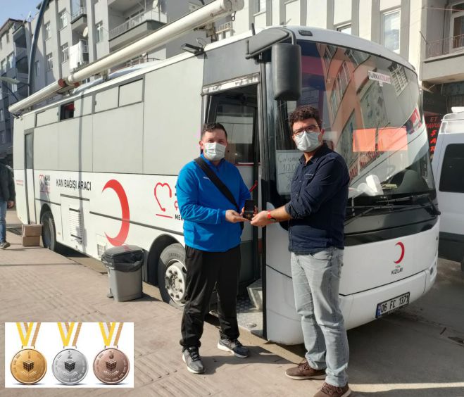 Giresun Kızılay Kan Bağış Merkezi mobil kan araç doktoru Serkan Yılmaz tarafından altın madalyası kendisine takdim edildi.