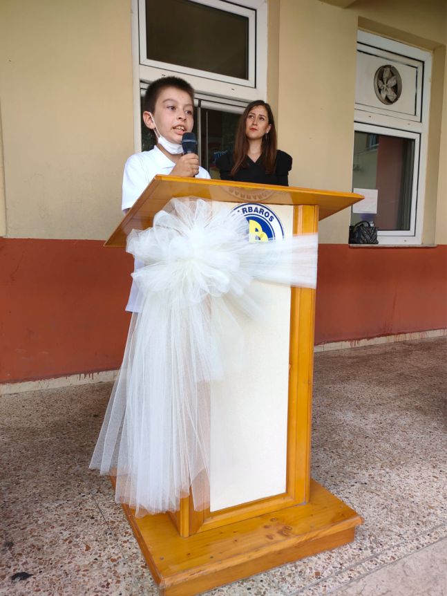 Barbaros İlkokulu öğrencileri Davut Emre Sarıgül “OKUL TÜRKÜSÜ”, Eli Kesik ise “OKULUMUZ” adlı şiirleri okudular.