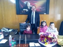 23 Nisan'da Bulancak İlçe Milli Eğitim Müdürlüğüne Alkım Ayvaz, Hilal Gençoğlu ve Rüveyda Akgün getirildi. Bulancak Vilayetler Hizmet Birliği Anaokulu öğrencileri Alkım Ayvaz, Hilal Gençoğlu ve Rüveyda Akgün 23 Nisan Ulusal Egemenlik ve Çocuk Bayramı nedeniyle İlçe Milli Eğitim Müdürü Şenel Bulut'u makamında ziyaret ettiler.İlçe Milli Eğitim Müdürü Şenel Bulut'un makam koltuğuna anaokulu öğrencisi Alkım Ayvaz oturdu.Öğrencilerle sohbet eden Şenel Bulut öğrencilere çikolata ikramında bulunarak çeşitli hediyeler verdi.