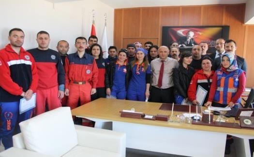 İl Sağlık Müdürü Opr. Dr. Ahmet Bal, 5-7 Mayıs 2015 tarihlerinde ilimizde düzenlenen “Ulusal Medikal Kurtarma Ekibi (UMKE) Bölge Eğitim Tatbikatı Kampı”na katılan personelleri bugün (07 Mayıs 2015 Perşembe) makamında kabul etti.