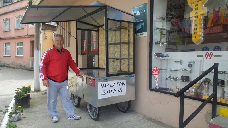 Giresun’un sevilen esnaflarından Anahtarcı Atilla Küçükbayrak, seyyar satıcışarının arabaları yapmazı objektiflermizie böyle yansıdı. Giresun’ da birçok kişinin köfte ekmek arabasını, simit arabasını yapan ve her geçen gün kendisiden seyyar araba yapılmasını istenilen Küçükbayrak, imkan verilirse seri üretime geçebileceğini açıkladı. Yaptığı araçların hafif ve kullanışlı olması, özellikle yağışı bol olan bölgemizde yağmur yağdığı zaman korunaklı olan seyyar araçına ilgi duyulmasından oldukça memnun kalan Atilla Küçükbayrak, gösterilen ilgiye bulancakhaber.net aracılığı ile teşekkür etti.