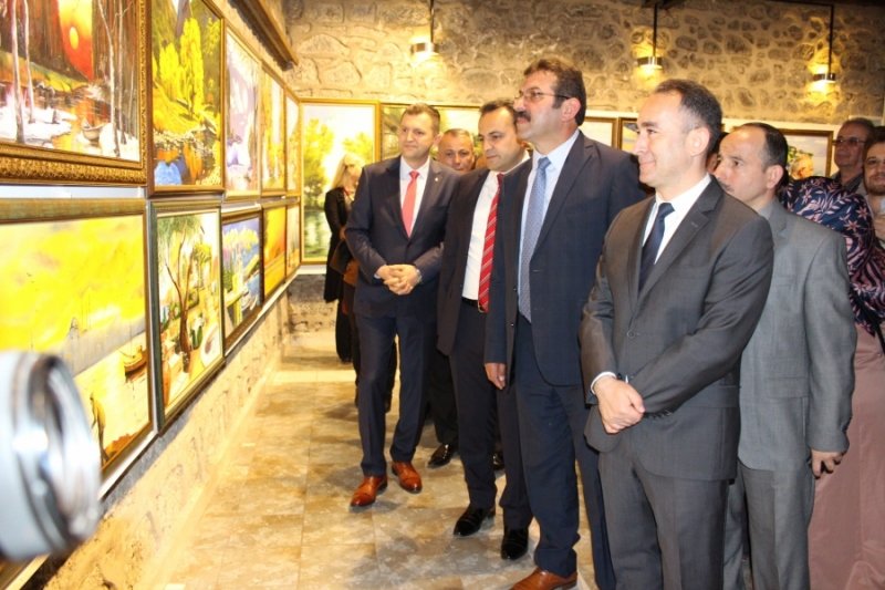 Konuşmanın ardından serginin açılış kurdelesi Vali Yardımcısı Sayın Barış Demirtaş ve İl Milli Eğitim Müdürü Sayın Necati Akkurt tarafından kesildi. Sergiyi gezen Vali Yardımcısı Demirtaş ve beraberindekiler, tabloları beğeniyle inceledi.