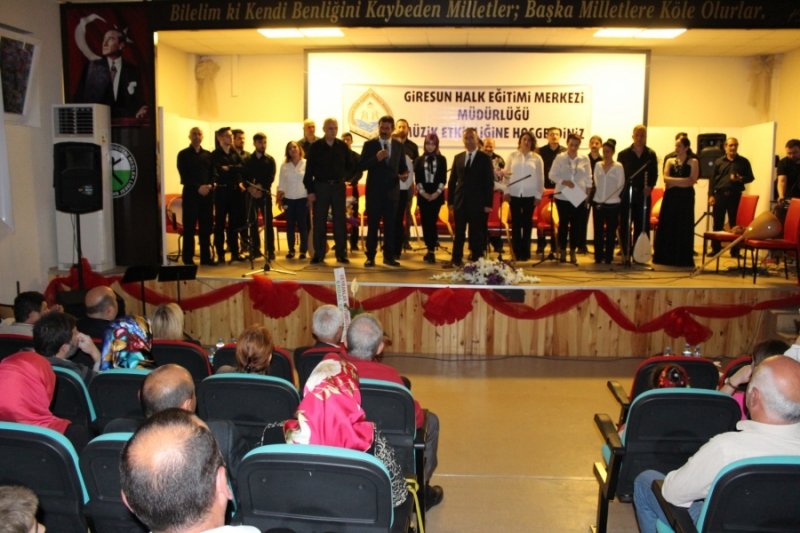 Giresun Halk Eğitimi Merkezi Müdürlüğünce düzenlenen halk müziği konseri büyük ilgi gördü. Giresun Mesleki ve Teknik Anadolu Lisesi Salonunda yapılan halk müziği konserine 2014-2015 öğretim yılında ilk defa kursiyer olarak bağlama kursuna katılan kursiyerlerin, enstrümantal olarak yurdumuzun çeşitli yörelerine ait türküleri büyük beğeni topladı. Ayrıca kemençe ve ney öğrencileri de 2’şer parça ile etkinliğe katkıda bulundular. Solist olarak sahne alan usta öğretici Sevinç Ay Kara ve Metin Karadeniz okudukları türkülerle geceye renk kattılar.
