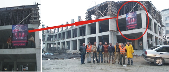 İnşaat işçilerinin, 18 Mart Çanakkale Deniz Zaferi'nin 101'inci yıldönümü kutlaması