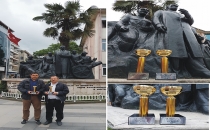 Gençlik ve Spor Haftası’nda kupaları ile birlikte Atatürk büstü önüne geçtiler