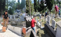 MEZARLIKLARDA BAYRAM ÖNCESİ TEMİZLİK ÇALIŞMASI