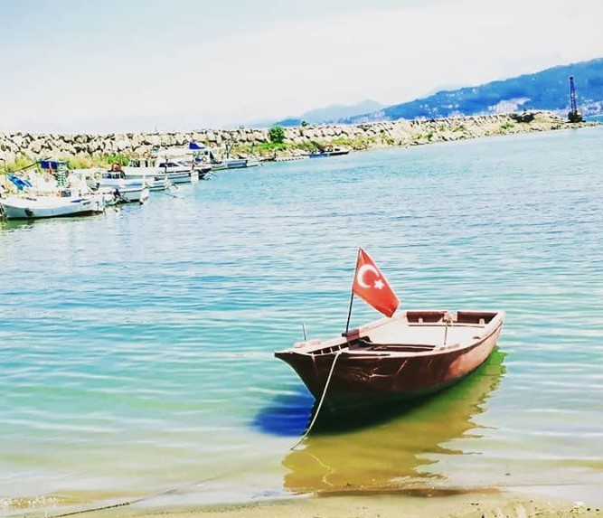 Giresun'a bağlı Yalı Mahalle ile Bulancak'a bağlı Yalıköy sınırı burası, evin hemen aşağısı, sınırdayım yani. Her ne kadar kum çeken ve taşıyan araçlar olsa da, bir huzur var limanda. Bir de sandal duruyor orada sessiz, sakin, kimsesiz. Sürüp gideceğim de, çekeceğim kürek yok güvertesinde...